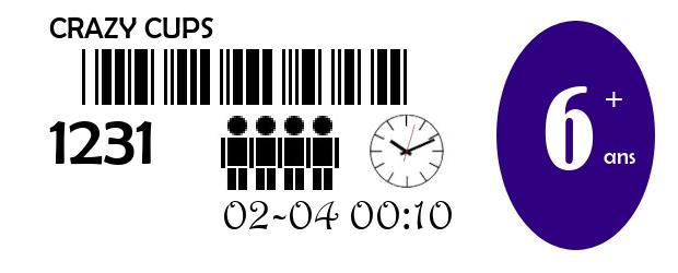 - 20 gobelets (4 bleus, 4 rouges, 4 verts, 4 noirs, 4 jaunes)